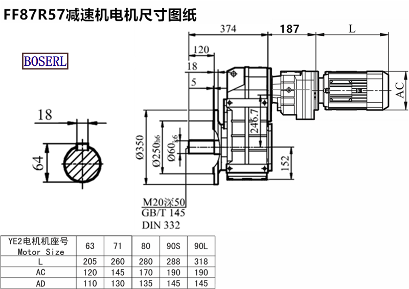 FF87RF57-Y0.75KW減速機(jī)電動(dòng)機(jī)安裝尺寸圖紙